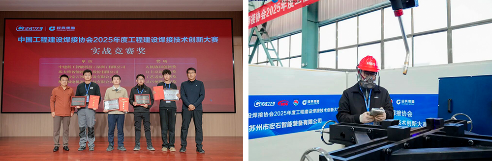 2025年11月25日至27日,中國工程建設焊接協會在山東濟寧舉辦的2025年度工程建設焊接技術創新大賽隆重召開,聚焦焊接技術創新與產業升級,是行業最具專業性與影響力的年度賽事之一。在這場匯聚業內頭部企業與先進裝備的高水平競技中,宏山激光攜自主研發的W2800T單變位機智能焊接機器人強勢登場,并憑借出色表現榮獲本次大賽“工藝適配創新獎”,以優異成績脫穎而出。
