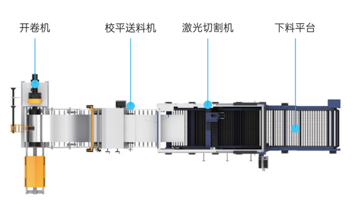 GL系列卷料激光切割機集開卷,校平、送料、激光切割、柔性下料等多重工序為一體。